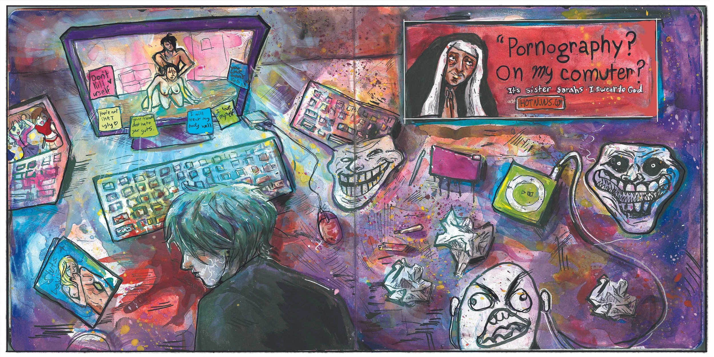 Many of my concepts originate from drawing mindlessly in my sketchbook. These small, personal illustrations frequently inspire larger ideas for different projects.